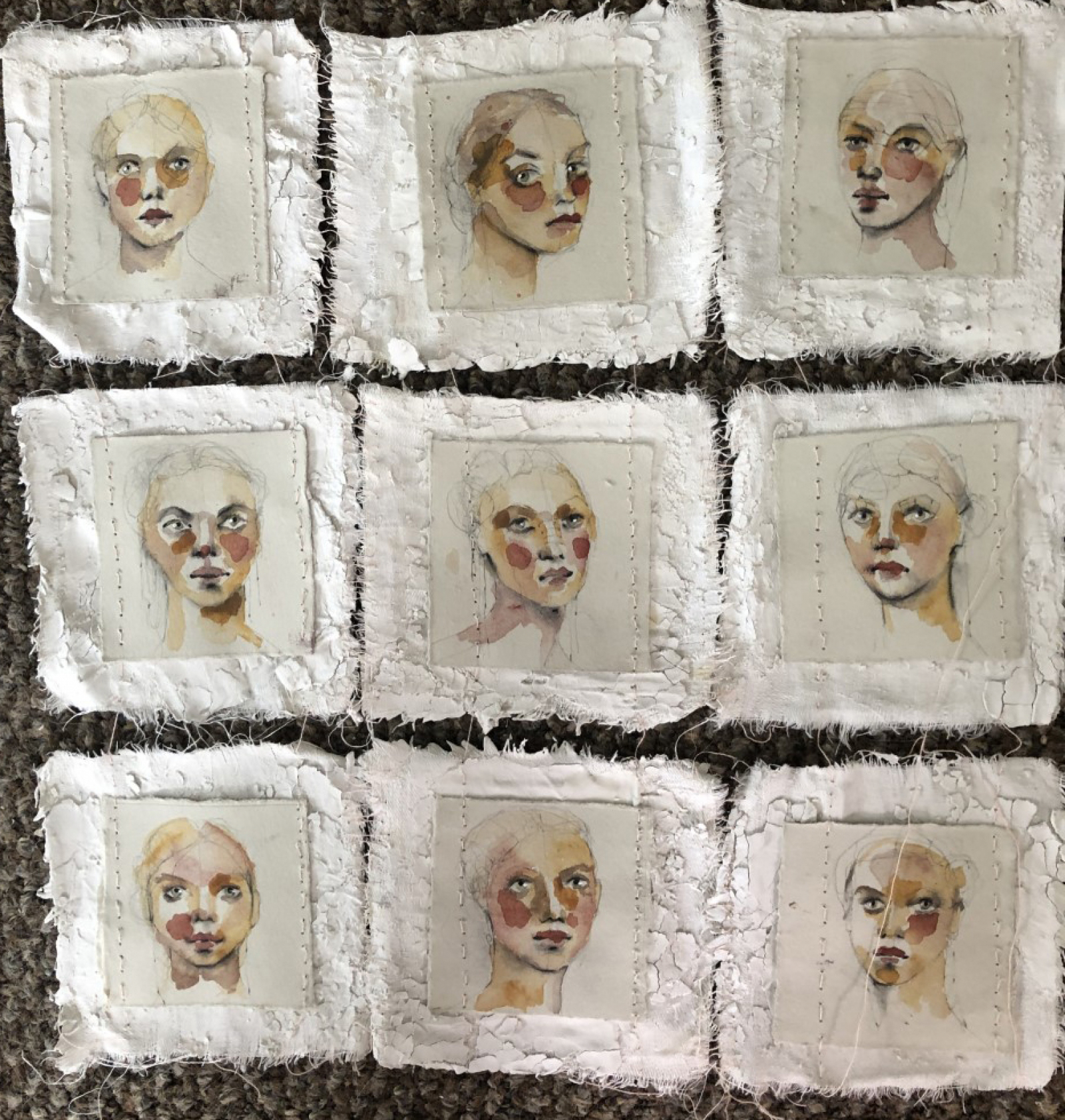 I show you how to grid out a figure and draw with pencil for shading that will then become and element in and abstract collage piece. I demonstrate with my stencils from Stencil Girl how to make a vestment which will be incorporated with a portrait. I work with wire and fabrics to created some very unique wings which can stand alone or incorporate in other pieces such as the figure collage. I also create little portraits that I stitch to make a grid which has all kinds of possibilities. I give you the the tools and want you, the student, to take those tools to make your own unique projects.