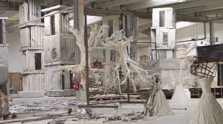 And later, he would leave Germany for France, where he felt more welcome. He eventually ended up in Barjac, France, in Provence, and bought an abandoned factory and a site for silk production. In that location, he built his own village, including art installations and pieces that looked like small skyscrapers or buildings. He also constructed several pieces in the form of dresses, honoring women and recognizing the unrecognized. Eventually, he would move to the Paris area, where he lives today, and work.