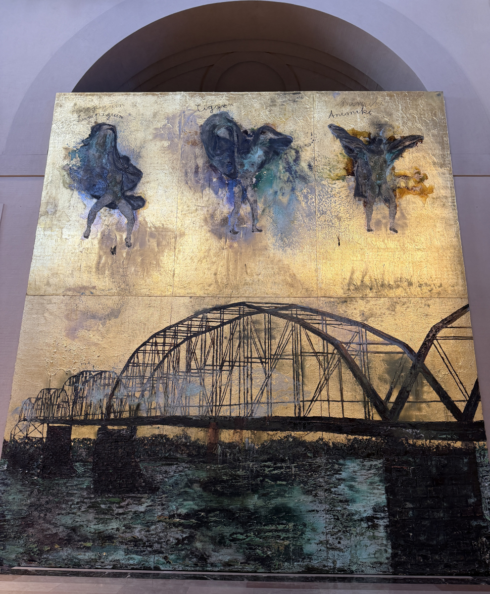 He has made paintings about the death camp at Auschwitz, about scenes from the Bible, about the ruined German parliament building, the Reichstag, in Berlin, and other monuments, both existing and demolished. For example, the recent St. Louis exhibit, which runs until January 2026, includes a gigantic piece honoring an abandoned bridge spanning the Mississippi River.