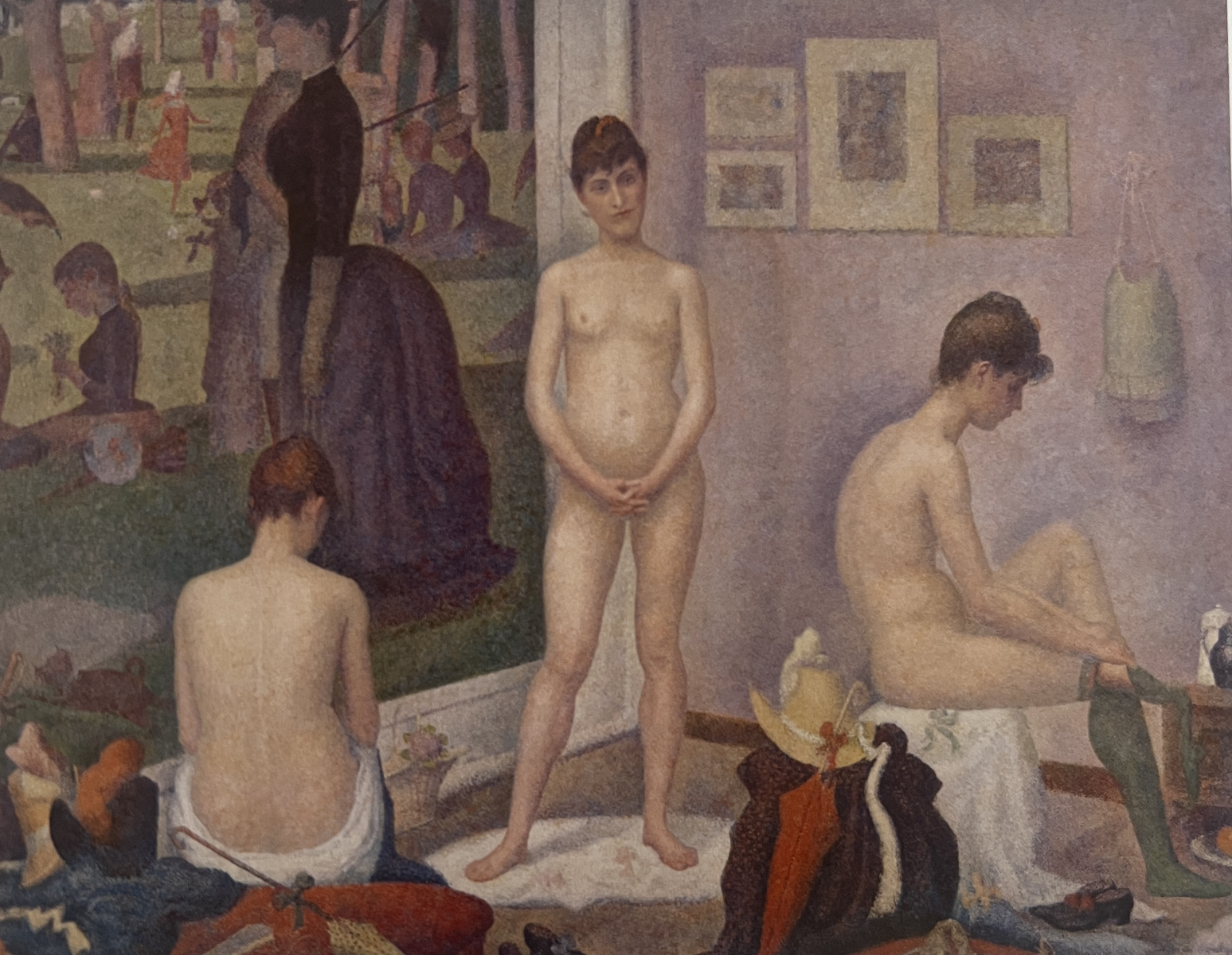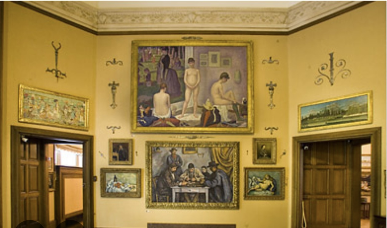 Here is an example of one. This is located in the Main Room West Wall. This is one of the more complex ensembles in the museum. It features Paul Cezanne’s ‘The Card Players,” Georges Seurat’s “Models (Poseuses),” Maurice Prendergast’s signature beach scenes, Cezanne’s “ Leda and the Swan,” and Henri Rousseau’s “View of the Quai at Asnieres.”